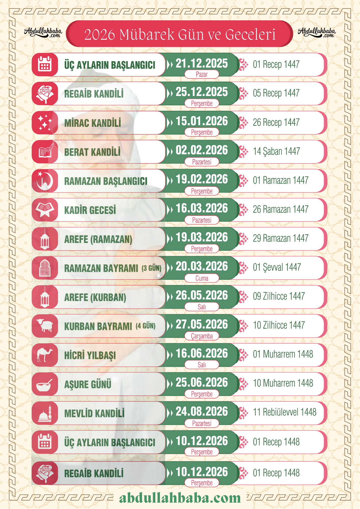 İşte 2026 yılında idrak edeceğimiz o mübarek zamanlar: