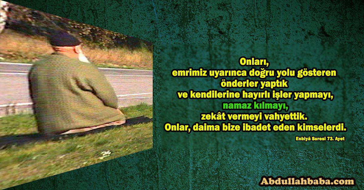 Onları, emrimiz uyarınca doğru yolu gösteren önderler yaptık ve kendilerine hayırlı işler yapmayı, namaz kılmayı, zekât vermeyi vahyettik. Onlar, daima bize ibadet eden kimselerdi.[10]