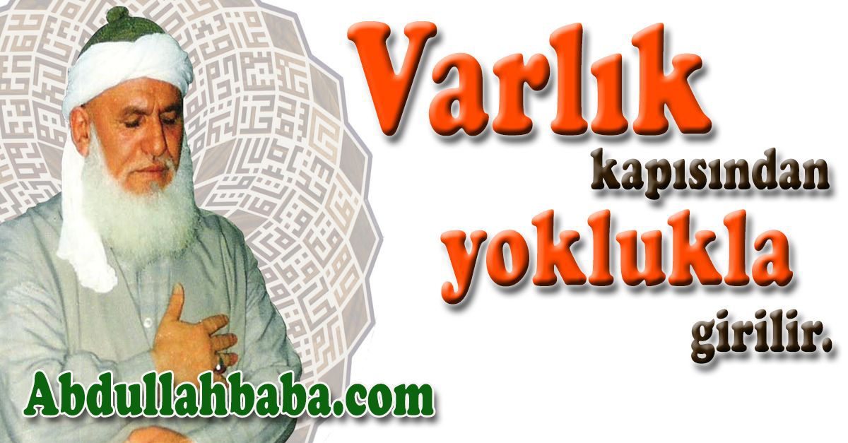 Cennet Mekân Abdullah Baba (ks) Hz.leri, “ Varlık kapısından yoklukla girilir.” Buyururlardı. Bu varlık kapısına nice zenginler makam sahipleri yoklukla girdiler.