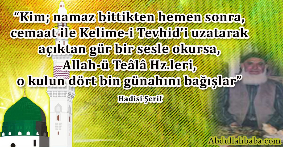 “Kim; namaz bittikten hemen sonra, cemaat ile Kelime-i Tevhid’i uzatarak açıktan gür bir sesle okursa, Allah-ü Teâlâ Hz.leri, o kulun dört bin günahını bağışlar” . buyurmuşlardır.