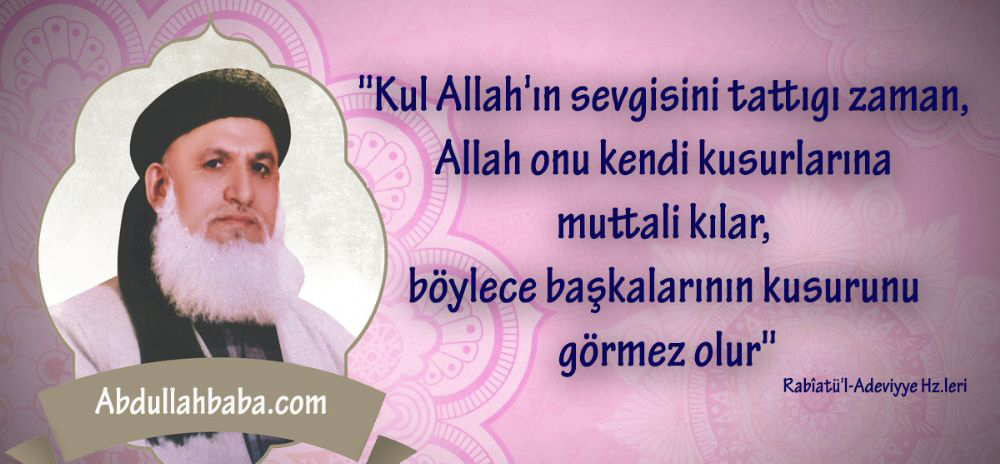 Rabîatü'l-Adeviyye: "Kul Allah'ın sevgisini tattığı zaman, Allah onu kendi kusurlarına muttali kılar, böylece başkalarının kusurunu görmez olur" der.