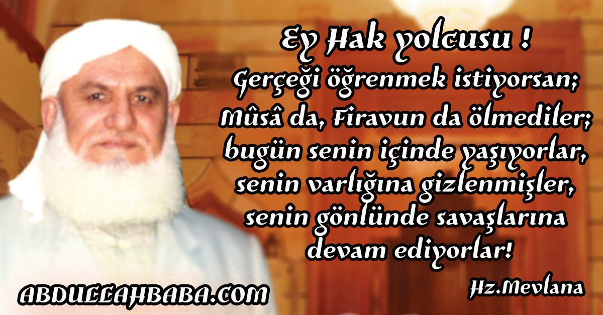 “Ey Hak yolcusu! Gerçeği öğrenmek istiyorsan; Mûsâ da, Firavun da ölmediler; bugün senin içinde yaşıyorlar, senin varlığına gizlenmişler, senin gönlünde savaşlarına devam ediyorlar!”