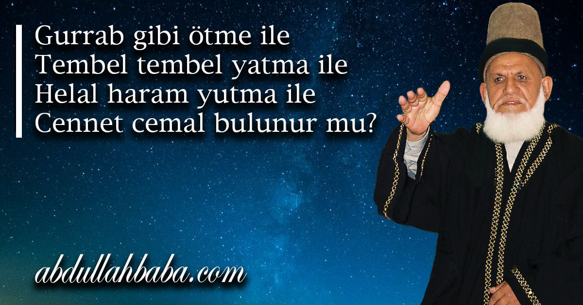 Cennet Mekân Abdullah Baba (ks) Hz.lerinin devamlı söylediği gibi;