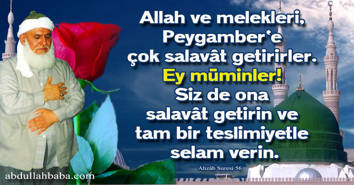 “Allah ve melekleri, Peygamber'e çok salavât getirirler. Ey müminler! Siz de ona salavât getirin ve tam bir teslimiyetle selam verin.” [1]