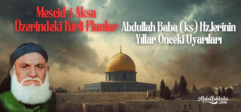 Cennet mekân Abdullah Baba (ks) Hazretleri, bu meseleler henüz dünya gündeminde bu denli yer bulmamışken, 1990’lı yıllarda gerçekleştirdiği 'Kıyamet Alametleri' konulu sohbetlerinde bizlere özel olarak çok çarpıcı hakikatler beyan buyurmuştur. Özellikle ahir zaman fitnelerine dair gizli kalmış pek çok hususta hemen her konuya en ince ayrıntısına kadar temas etmiş; bu meselelerden bir tanesini de doğrudan Mescid-i Aksa ve civarında yaşanacak hadiselere hasretmiştir. Meseleyi bu özel çerçeveden ele alması, konunun vahametini ve ciddiyetini günümüz penceresinden bakıldığında çok daha sarsıcı bir şekilde gözler önüne sermektedir. Nitekim bu hakikatleri o dönemde şu sözlerle aktarmıştır:"