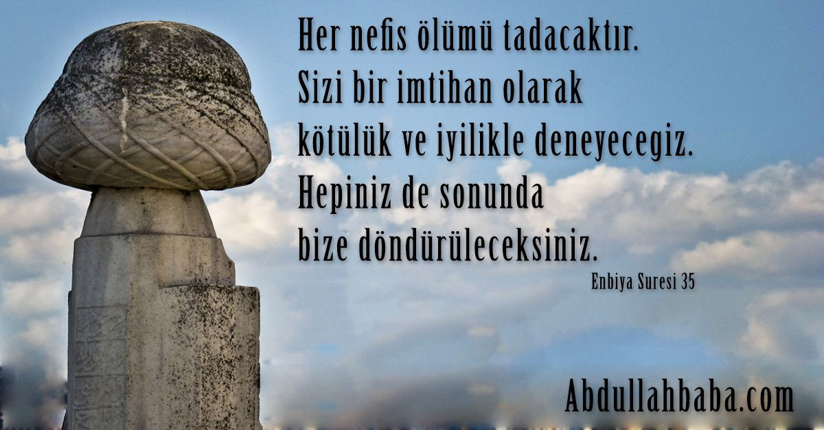 Her nefis ölümü tadacaktır. Sizi bir imtihan olarak kötülük ve iyilikle deneyeceğiz. Hepiniz de sonunda bize döndürüleceksiniz. [1] buyurmaktadır.