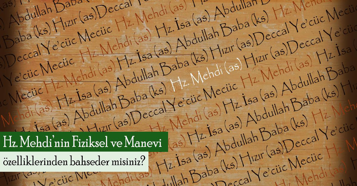 İnternette Mehdi (as) ile ilgili birçok bilgi bulunuyor. Bunların doğruluğundan emin olamıyoruz. Mehdi (as) fiziksel özelliklerinden, manevi özelliklerinden bahseder misiniz?