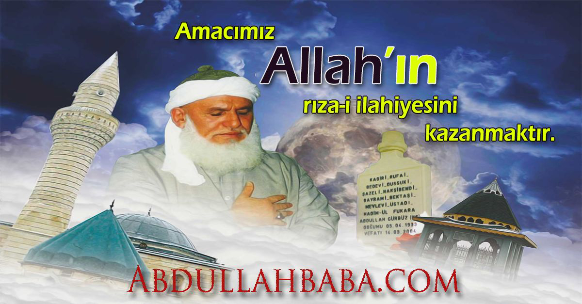 Amacımız Cennet Mekân Abdullah Baba (ks) Hz.lerinin yolunu en saf haliyle insanlara tanıtabilmektir.