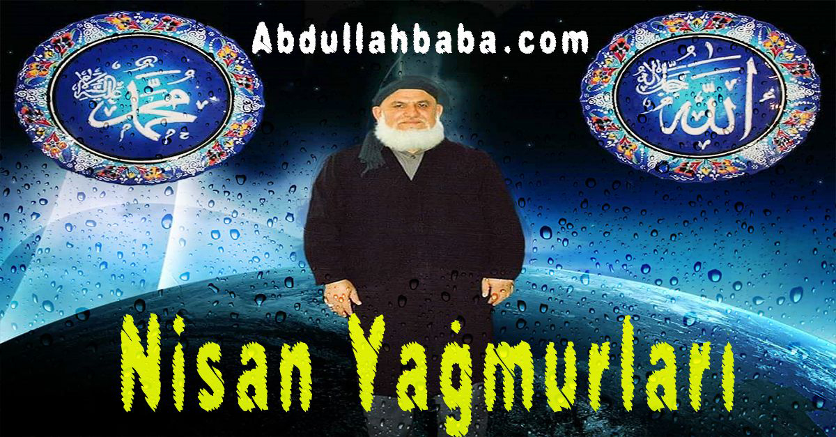 Cennet Mekân Abdullah Baba (ks) Hz.leri Nisan yağmurlarıyla ilgili olarak bizlere bir sohbetinde, Annem nisan yağmurlarını temiz bir şekilde toparlar. Bu topladığı yağmur sularını süpürgeyi batırır evimizin odalarına çırpardı. Bunu neden yaptığını sorduğumda “rahmet, bereket” olur evladım demişlerdi.