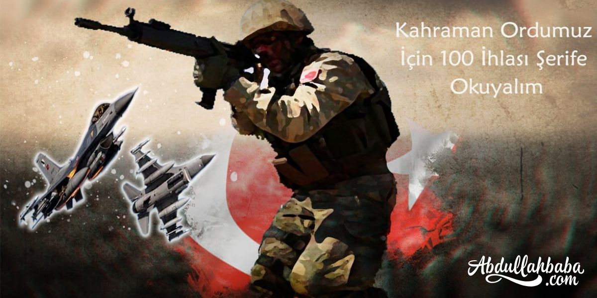 Şu an ülkemize ihanet eden vatan hainlerine karşı ordumuza, polisimize İhlâs melekleriyle yardım olunması ve korunmaları için 100 ihlas-ı şerif okumanız tavsiye olunur.